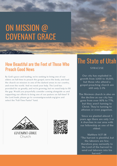 Syracuse, like Utah, is rapidly growing. The harvest is plentiful, but the laborers are few. Would you pray that the Lord would provide for us to bring one of our pastors, Darren Colwell, on full time? And if the Lord leads, we would humbled and honored if you would consider financially supporting us as well to achieve this goal. You can do so by choosing the “Full-Time Pastor” fund above and making a one-time or recurring donation.
